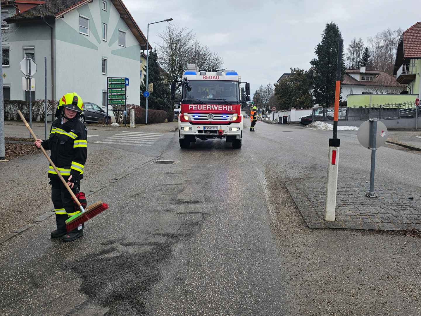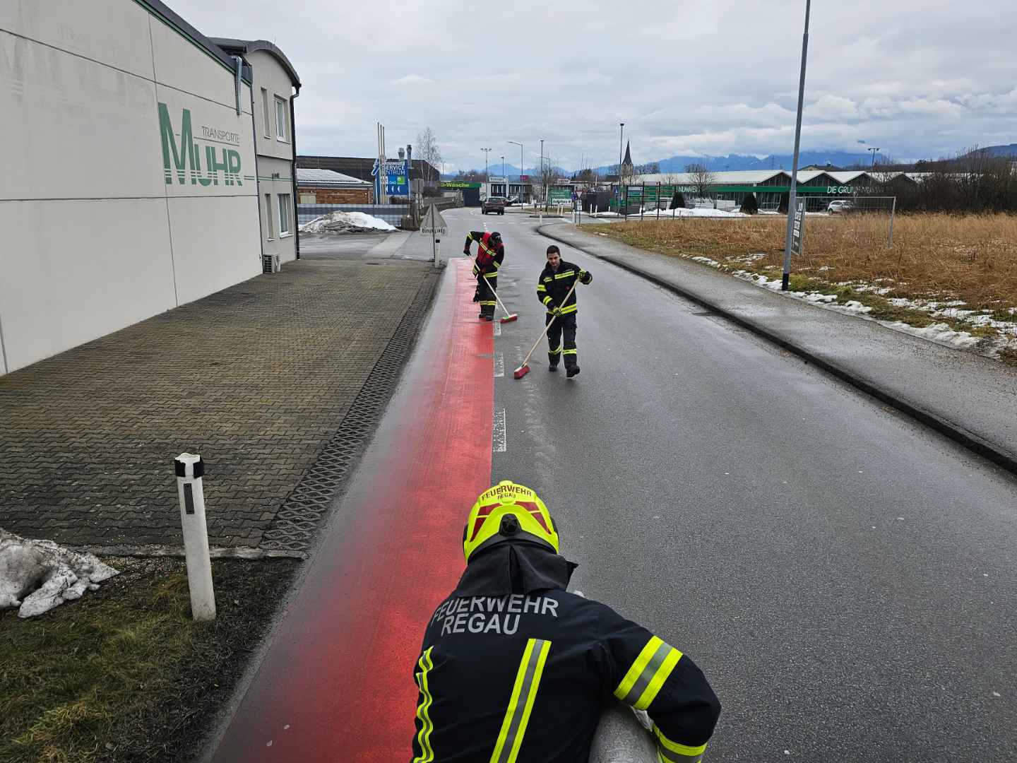 Die Spur wurde mittels Ölbindemittel und Bioversal gebunden. Während unserer Tätigkeiten konnte die Polizei den Verursacher ermitteln.